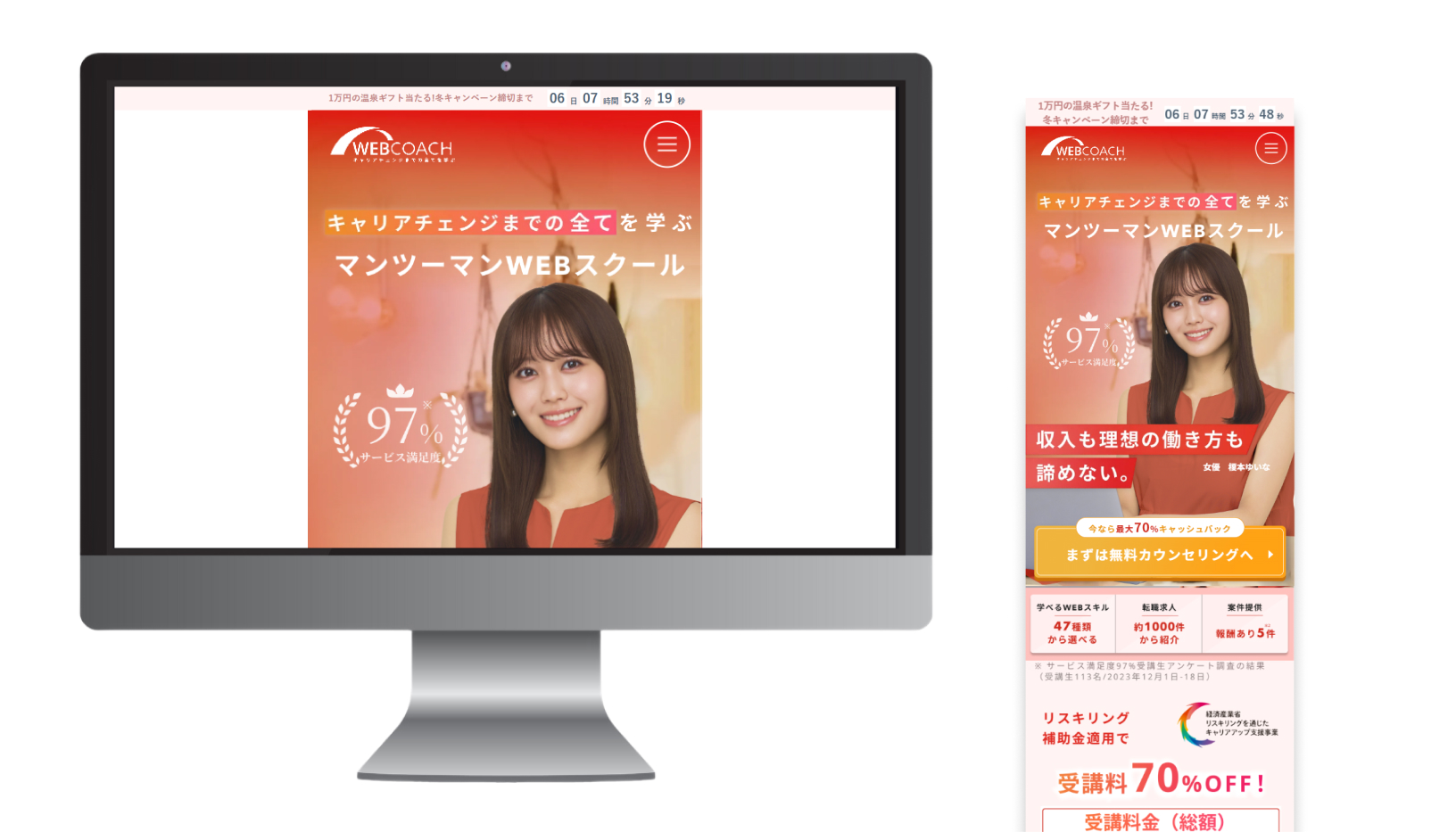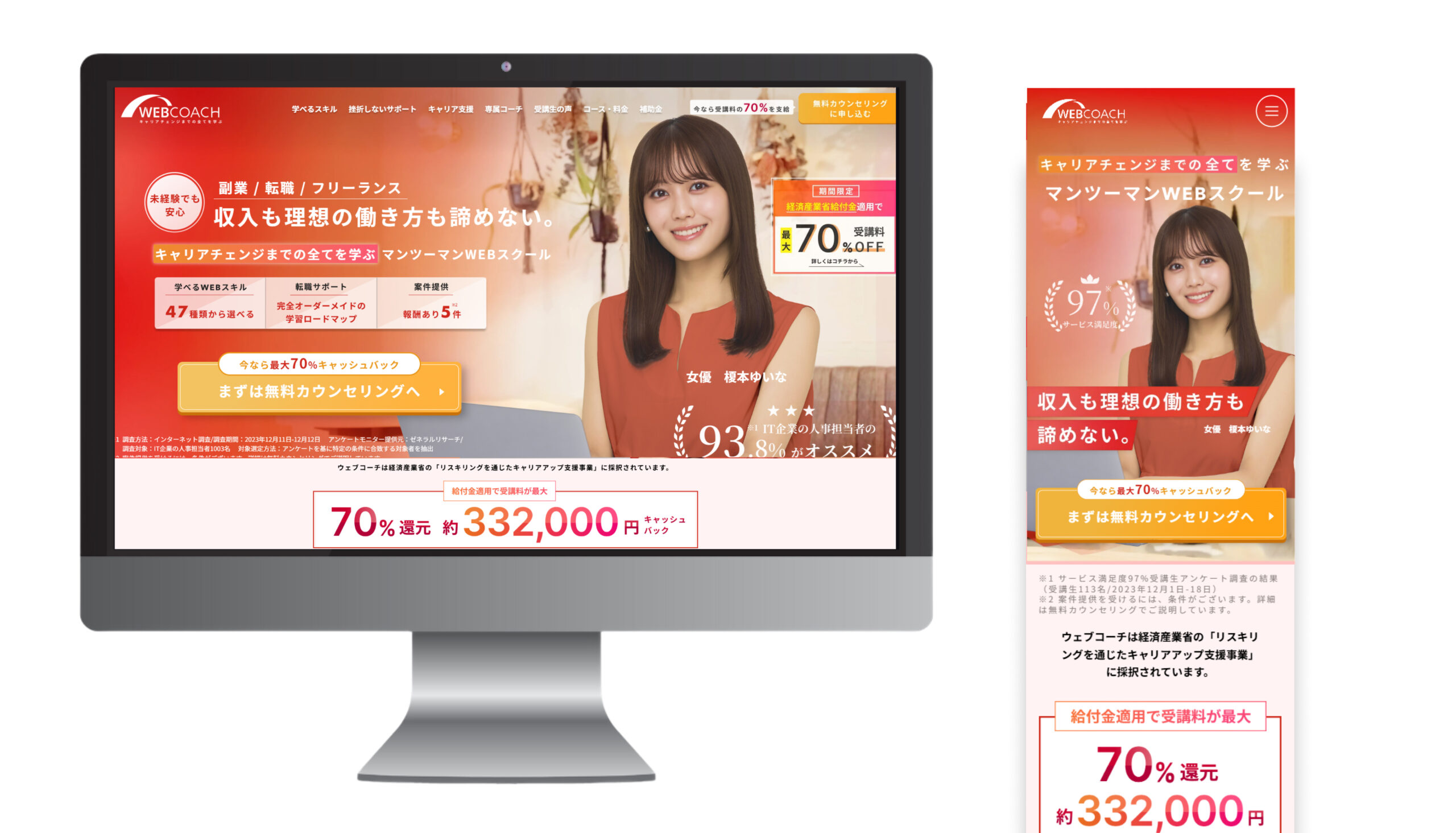 WEBCOACHは、キャリアチェンジまでの全てを学び理想の”収入と働き方”、土地田も叶えるためのマンツーマンWEBスクールです。